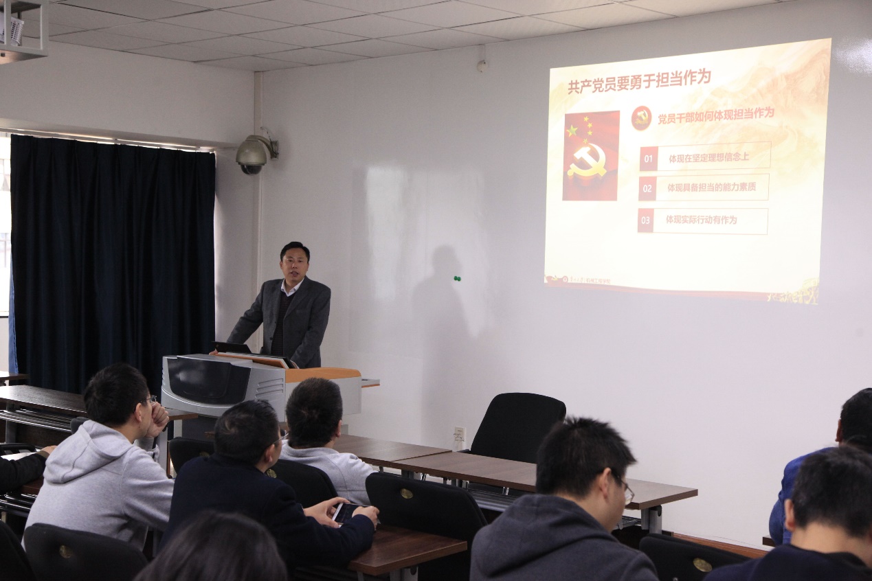 機械工程學(xué)院網(wǎng)訊(報道 王立|攝影 侯宇康 劉艷)10月25日,按照“不忘初心、牢記使命”主題教育實施方案的統(tǒng)一部署,機械工程學(xué)院院長李少波講授題為《聚力雙一流,積極擔(dān)當(dāng)作為,勇攀機械工程學(xué)科發(fā)展新高地》專題黨課。機械工程學(xué)院黨員干部參加本次黨課學(xué)習(xí)。