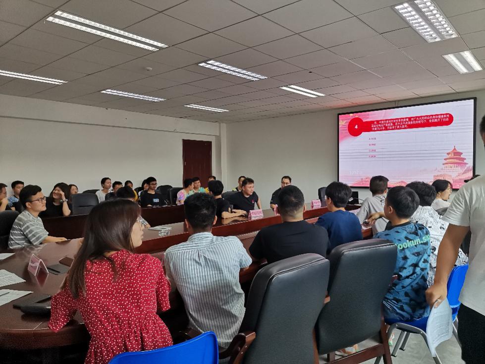 在準(zhǔn)備階段,組織了全體研究生和本科生黨員開展了賽前學(xué)習(xí)。比賽現(xiàn)場分為必答和搶答兩個環(huán)節(jié)。在必答環(huán)節(jié)。經(jīng)過賽前對黨史知識的學(xué)習(xí),各參賽支部需隨機回答五道黨史題來檢驗學(xué)習(xí)成果,并由工作人員現(xiàn)場核對答案,得出必答環(huán)節(jié)的占比成績。在搶答環(huán)節(jié)中,各支部五人為1組,搶答共30題,答對得分,答錯扣分。