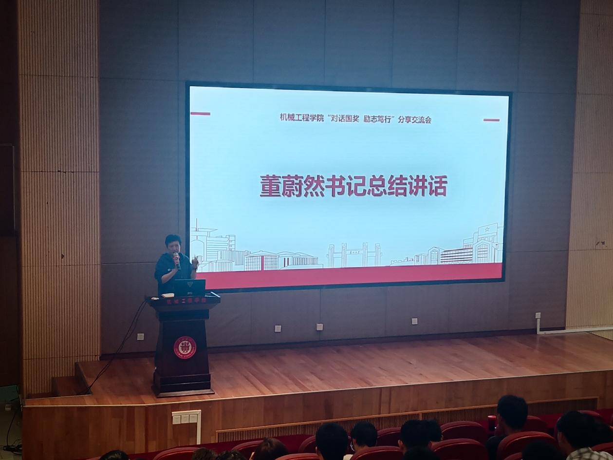 機(jī)械工程網(wǎng)站訊(記者楊朵|攝影凌海蕎)對(duì)話國(guó)獎(jiǎng),見(jiàn)賢思齊,自古成功無(wú)捷徑、千錘百煉才成鋼。為彰顯國(guó)獎(jiǎng)、國(guó)勵(lì)獲得者的榜樣力量,強(qiáng)化學(xué)風(fēng)建設(shè),引導(dǎo)同學(xué)們學(xué)生勤奮學(xué)習(xí)、勵(lì)志成才,2024年4月18日,機(jī)械工程學(xué)院舉辦“一站式”學(xué)生社區(qū)活動(dòng)之“對(duì)話國(guó)獎(jiǎng) 勵(lì)志篤行”分享交流會(huì)。會(huì)上邀請(qǐng)4名國(guó)家獎(jiǎng)學(xué)金獲得者、2名國(guó)家勵(lì)志獎(jiǎng)學(xué)金獲得者向360余名同學(xué)分享奮斗歷程和經(jīng)驗(yàn)感悟,活動(dòng)由學(xué)生科輔導(dǎo)員楊朵主持,正處級(jí)組織員董蔚然參加。
