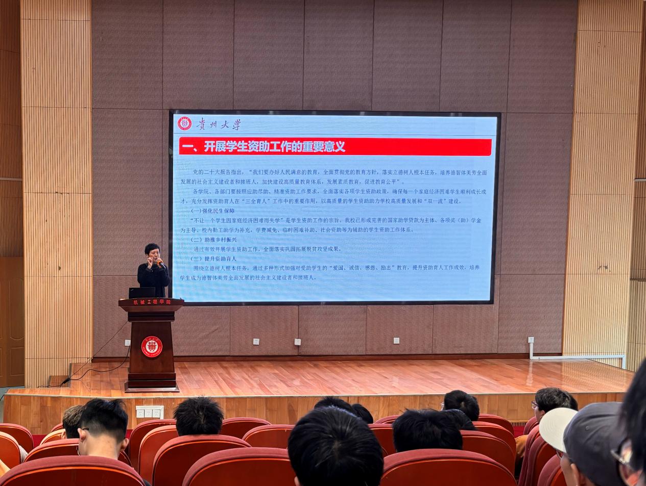 活動伊始,董蔚然同志發(fā)表了熱情洋溢的致辭,從開展學(xué)生資助工作的重要意義、目前高校學(xué)生資助政策、貴州大學(xué)學(xué)生資助體系及學(xué)生受助情況、開展學(xué)生資助工作、如何凸顯資助育人成效5個方面向同學(xué)們進行宣講。她強調(diào)了資助政策對于促進教育公平、助力學(xué)生成長的重要意義,并鼓勵學(xué)生們積極了解政策、申請資助,為自己的未來發(fā)展打下堅實的基礎(chǔ)。