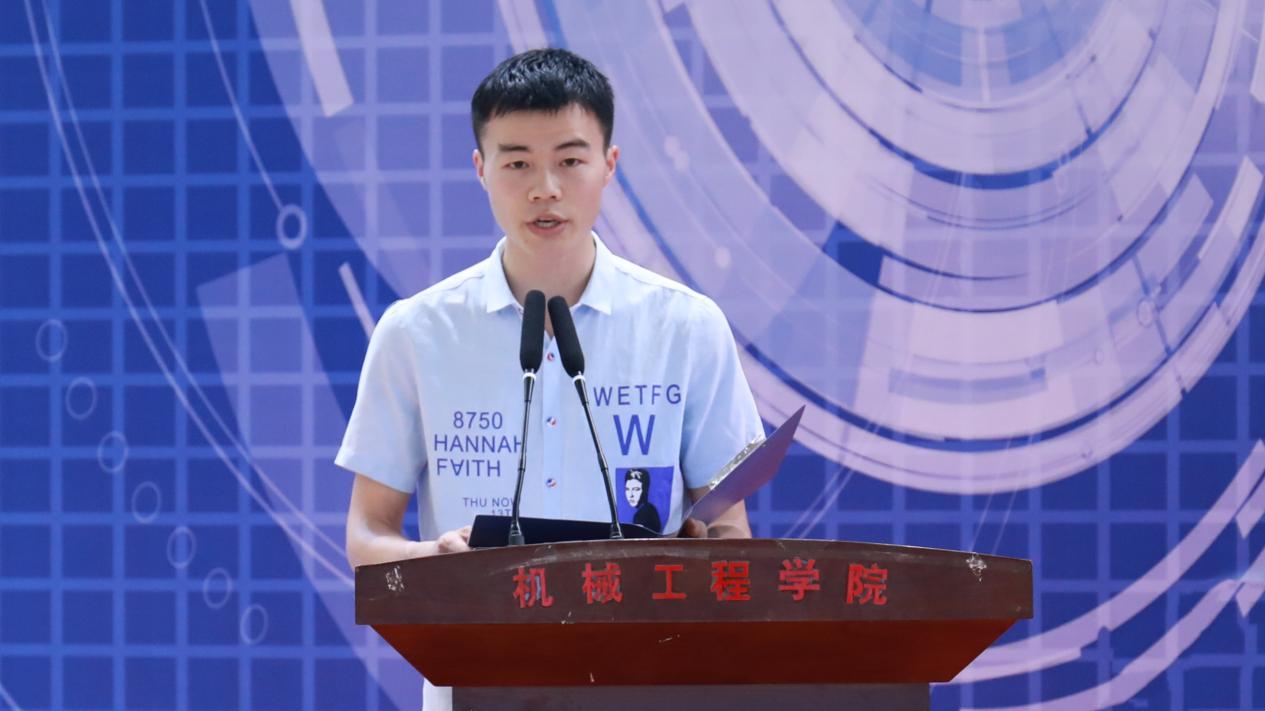貴州大學(xué)機械工程學(xué)院機械設(shè)計制造及其自動化專業(yè)羅一波同學(xué)代表參賽隊伍發(fā)言。